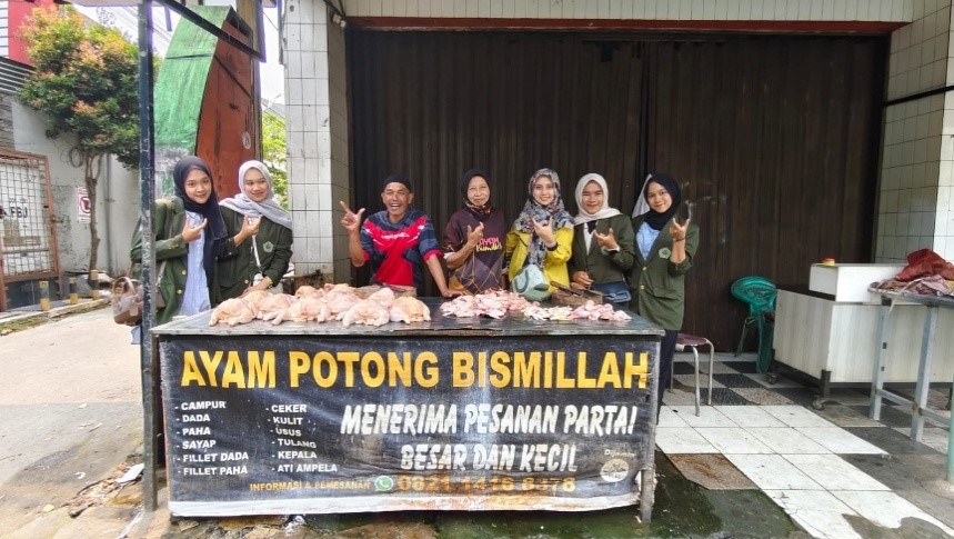 Perubahan juga terlihat pada etalase Ayam Bismillah. Tim menyerahkan meja display stainless steel ergonomis dengan saluran drainase, lampu sorot, hingga alat pembasmi lalat elektrik. Spanduk baru yang tahan air, seragam, dan celemek dengan logo khas turut menambah kesan profesional sekaligus meningkatkan citra higienis.